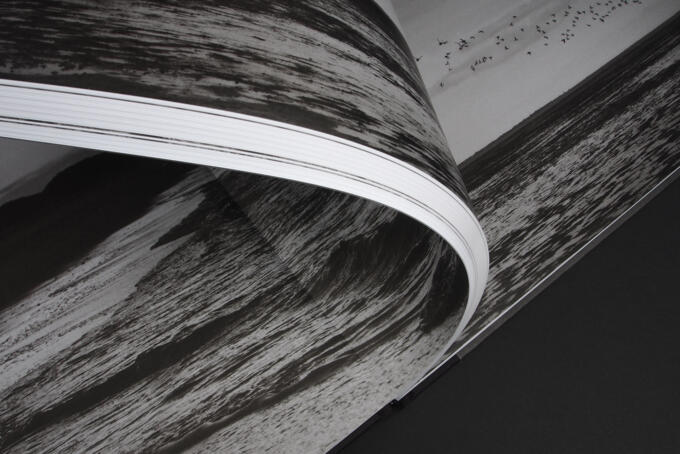 Was ist zu tun, wenn 4 Farben eine zu viel und viel zu bunt sind? Ganz einfach. Erst mal alle Farbwerke der Druckmaschine waschen und von den ganzen Bundfarben befreien. Jetzt können die Druckzylinder durchatmen und sind bereit für ein kleines Meisterwerk. Aus Pantone Black, Prozessschwarz und Pantone warm grey wird gleich ein wunderbarer Triplex entstehen. Jetzt fehlt nur noch das perfekte Medium um die Eindrücke von Herrn von Wiedenbeck wiederzugeben. Das Meer vor Sylt kann sich rauh aufbäumen und im nächsten Augenblick glatt wie eine Glasscheibe sein. Genau so sollte das Papier sein. Ein Mix aus Pergraphica und Magno Matt machen es möglich.