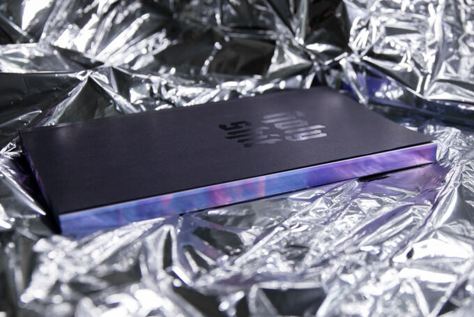 Schwarzes Papier bedruckt mit schwarz als alternative zum UV-Lack