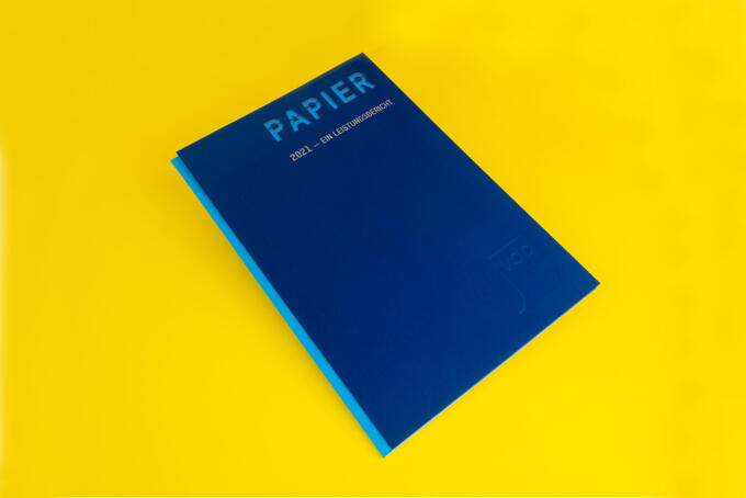 Eine komplexe und spannende Anfrage erreichte uns mit dieser Steifbroschur vom Verband Deutscher Papierfabriken. Mit jedem Satz wurden unsere Augen größer und wir waren sofort mehr als begeistert von diesem Projekt. Da hieß es erst mal Köpfe zusammenstecken, um die technische Machbarkeit zu prüfen. Relativ schnell waren die entsprechenden Lösungen gefunden und wir konnten grünes Licht geben. Ein paar Änderungen bleiben bei einem multidimensionalen Projekt nicht ausgeschlossen, das ist ja quasi die Würze in der Suppe.