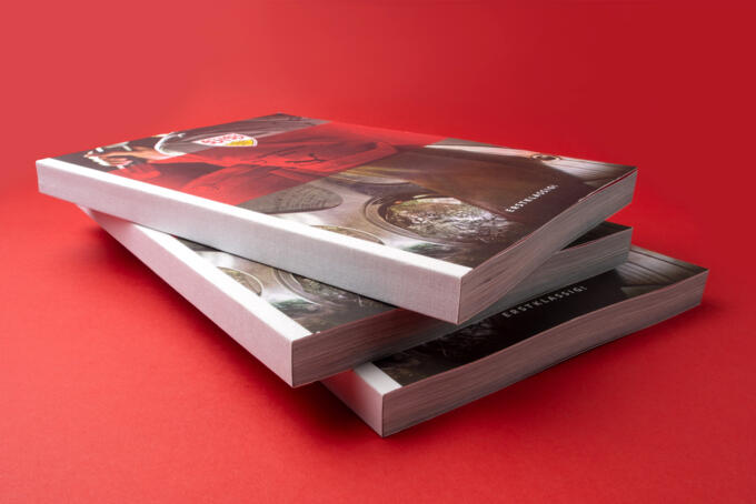 Erstklassig! Das ist nicht nur der Titel dieser Broschüre sondern auch das Konzept. Das weiße Fälzelband macht die Broschüre zu etwas Besonderem. Technisch ist die Herstellung nicht viel anders als bei einer Klebebindung. Aber gerade die Einfachheit mit Fläzelband in Kontrast zu den emotionalen Bildern bauen einen Spannungsbogen auf der den Leser begeistert.